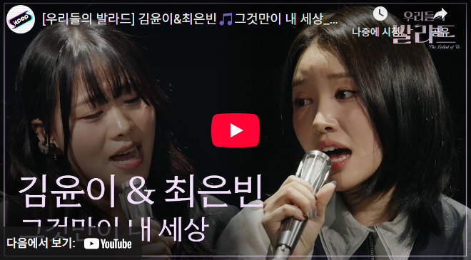 이렇게 감성 가득한 무대를 선사해주는 '우리들의 발라드'는 매 회차마다 우리에게 큰 울림을 주고 있습니다. 특히 이번 7회는 듀엣이라는 포맷 덕분에 감동도 두 배였죠! 여러분은 어떤 무대가 가장 인상 깊었나요? 혹은 발라드 TOP100 중 어떤 곡이 다음 회차에 나오길 기대하시나요? 🎤